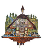 Bayrisches Haus mit beweglichen Biertrinkern und Mühlrad Kuckucksuhr 8TMT 3413 /9